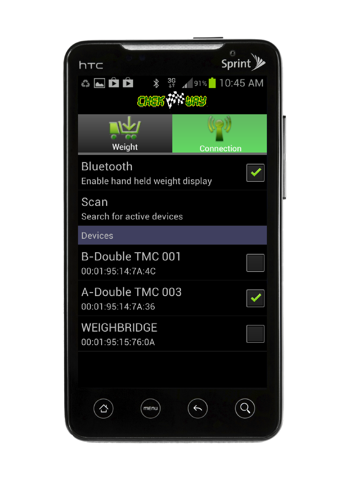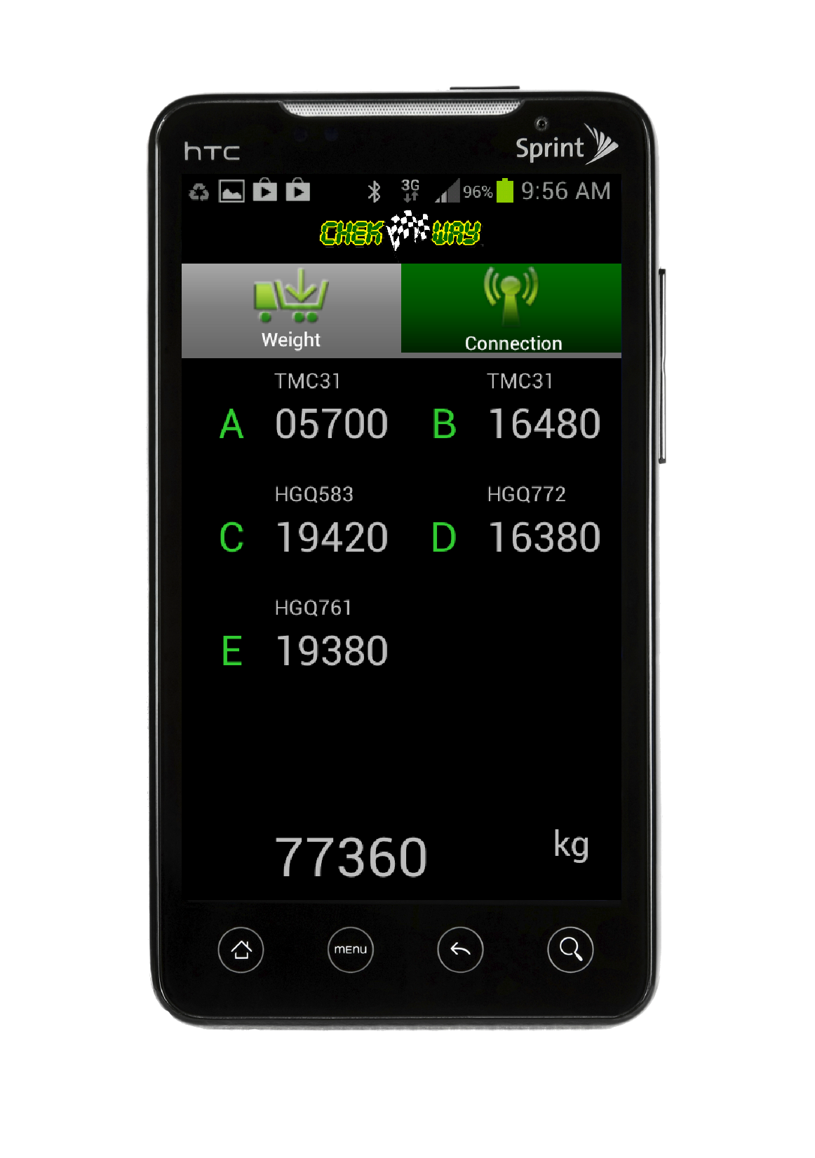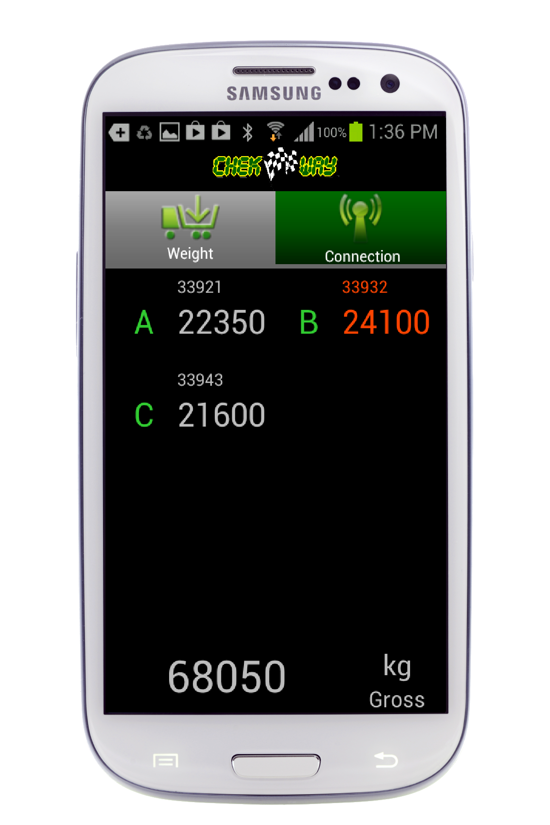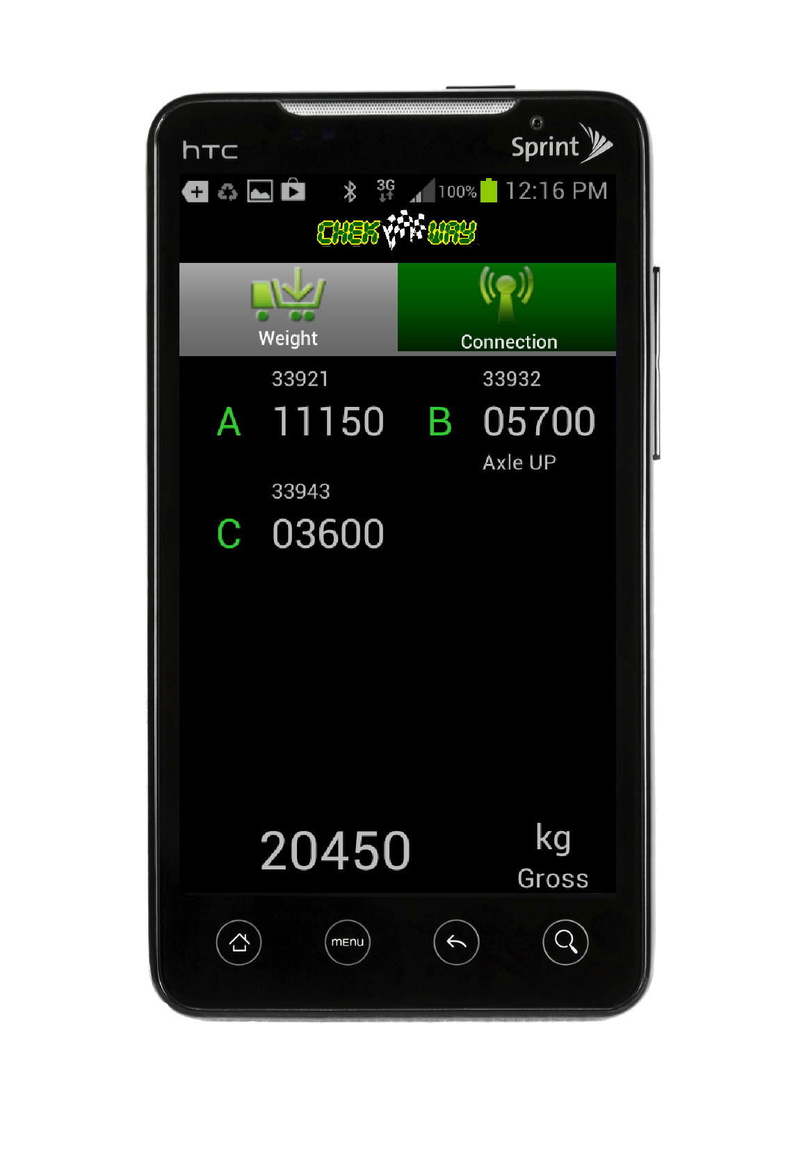 Phone-Way© is a hand held mobile application for remote viewing of on-board truck scales, truck mounted cranes and weigh-bridges  With Phone-Way you can extend the capabilities and features of the Chek-Way® on-board electronic scales, whilst retaining the functionality and features of a smart phone.